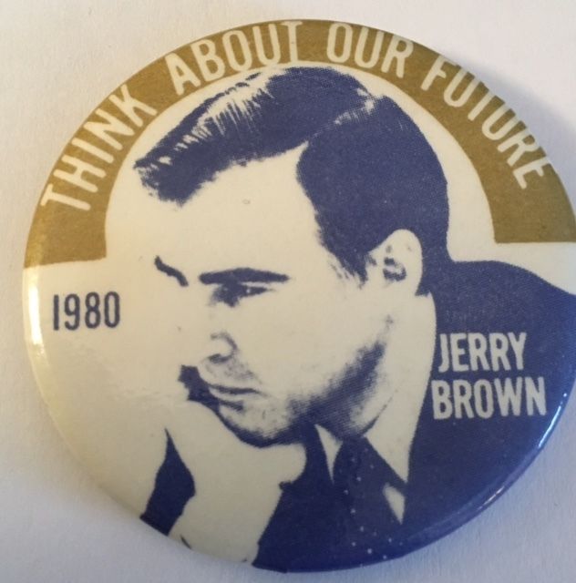 Title (ebay affiliate link): 1 3/4" Jerry Brown 1980 Think About Our Future Political Campaign Pinback Button