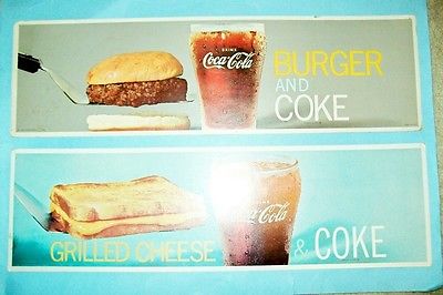 Title (ebay affiliate link): 2 Original/Vintage 1970s Coca-Cola Cardboard Restaurant Signs with Food Pictures