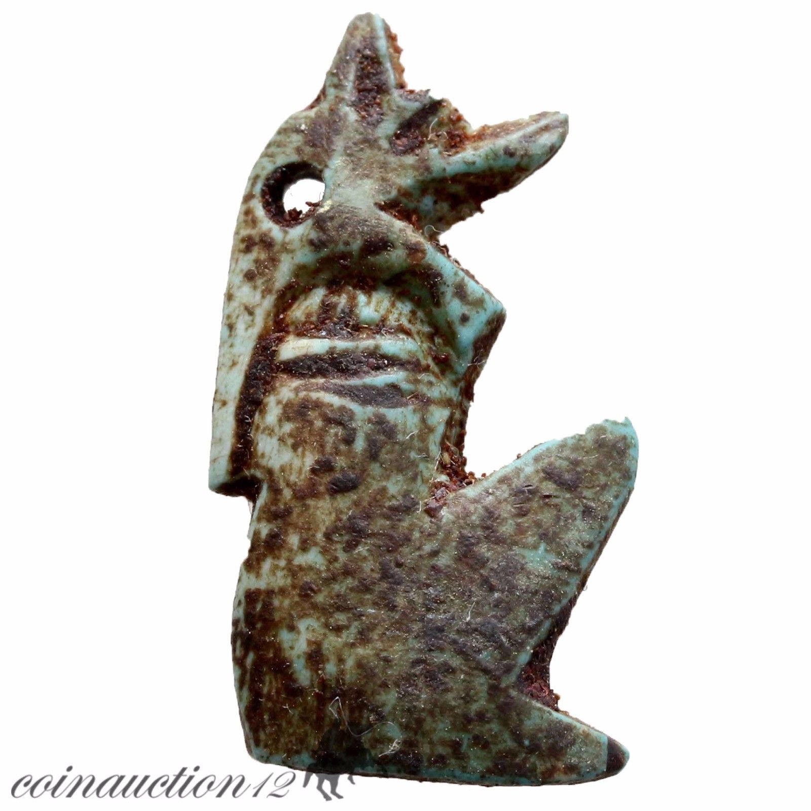 Title (ebay affiliate link): RARE , CIRCA 1500 AD EGYPTIAN FAIENCE FLAT AMULET PENDANT ANUBIS