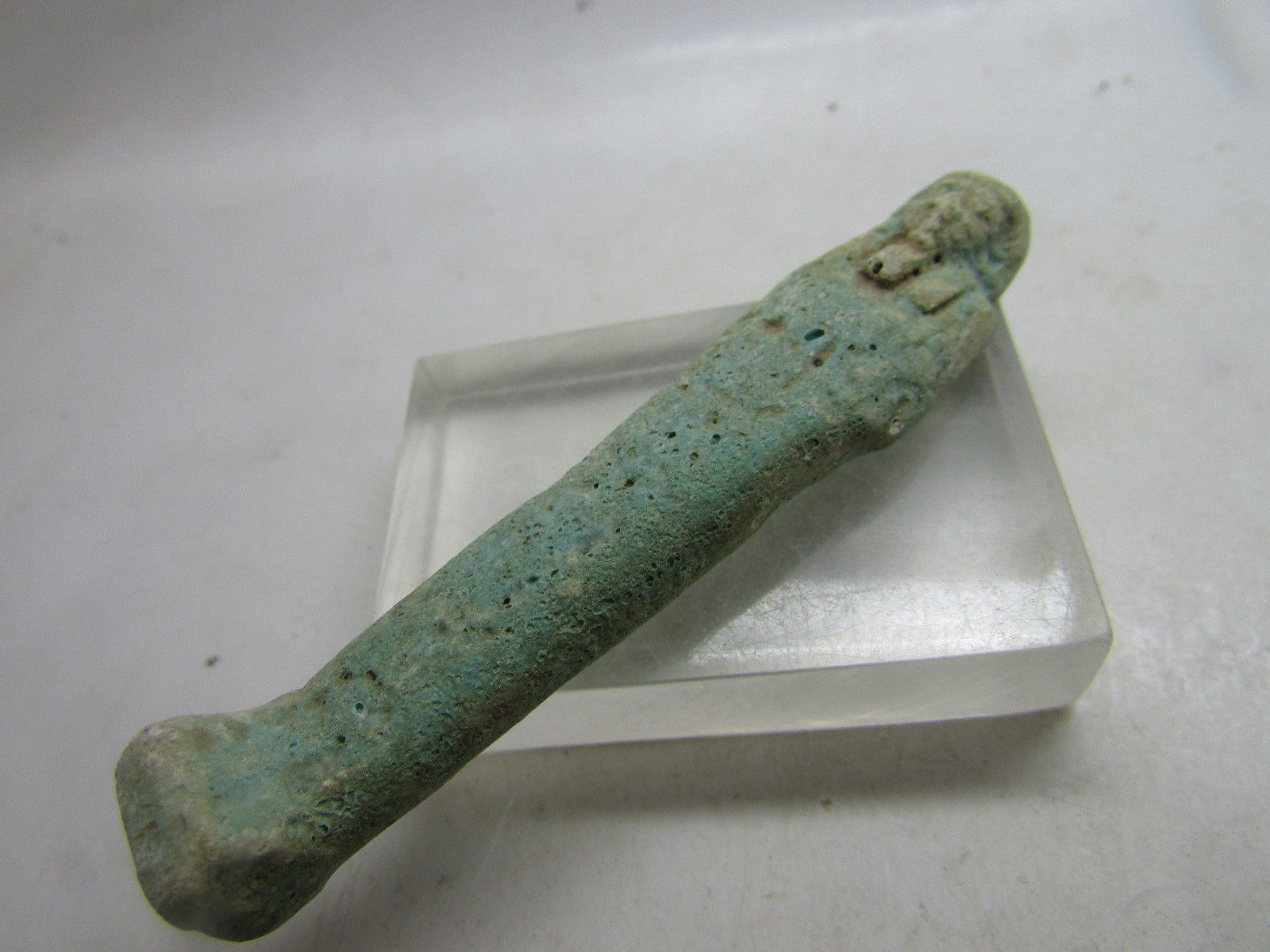 Rare ancient Egyptian glazed faience ushabti with hieroglyphs
