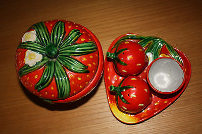 Made in Occupied Japan - Lunch picnic set salt shaker tea cup strawberry