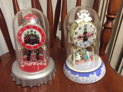 Title (ebay affiliate link): Set Of 2 Coca Cola PENDULUM QUARTZ CLOCKS PORCELAIN PLASTIC DOMES