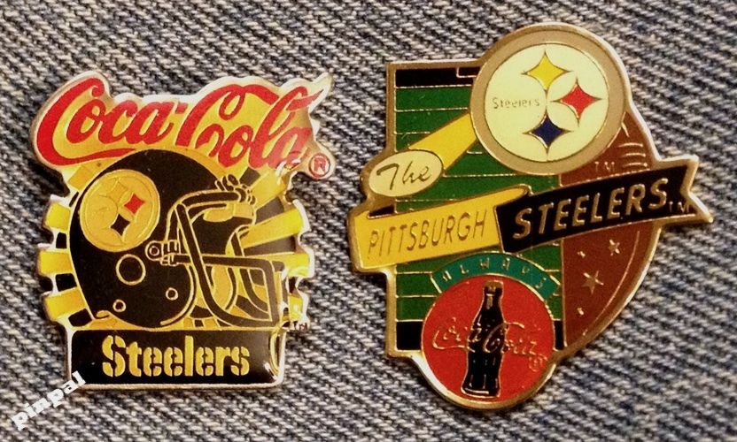 Pittsburgh Steelers~Lot of 2 Pins~NFL~Football~Helmet~vintage~Coca Cola Coke~NOS