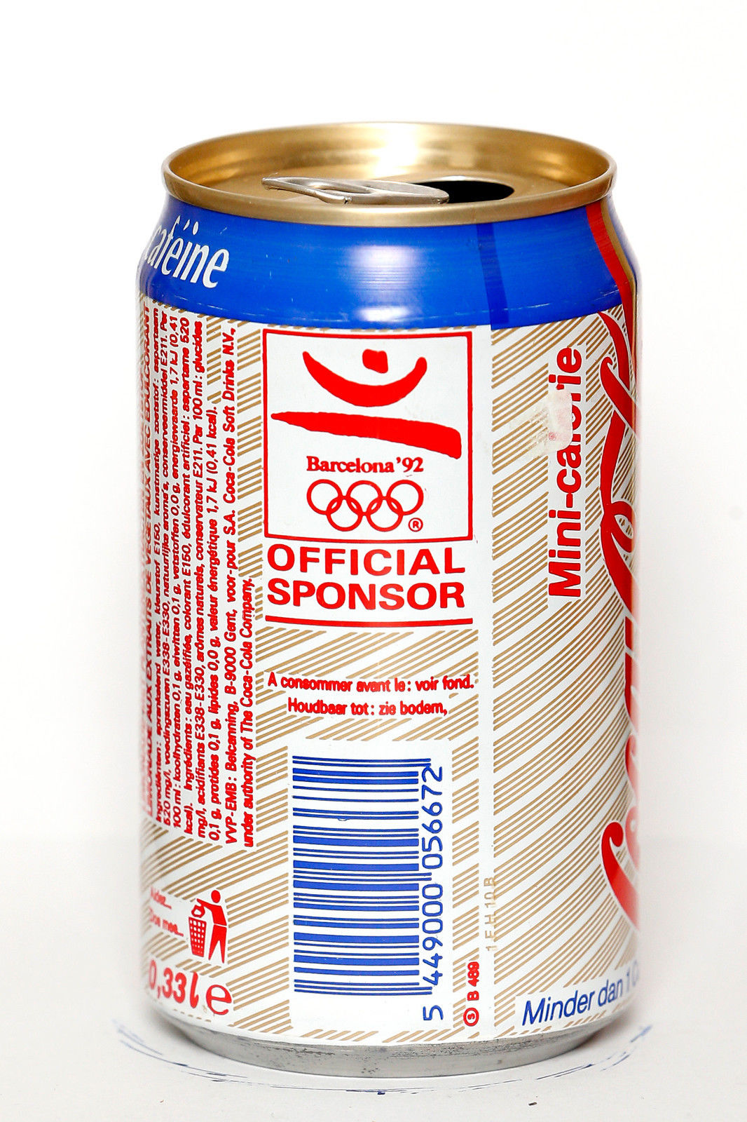 Title (ebay affiliate link): 1992 Caffeine Free Coca Cola Light can from Belgium, Barcelona ''92