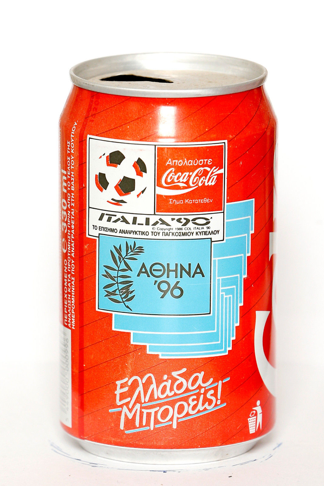 Title (ebay affiliate link): 1990 Coca Cola can from Greece, Italia ''90 / Athens ''96