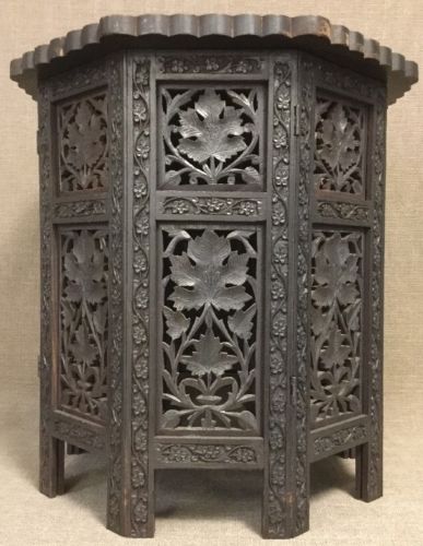 Title (ebay affiliate link): Antique Moroccan Indonesian Carved Inlay End Coffee Table Round Tray