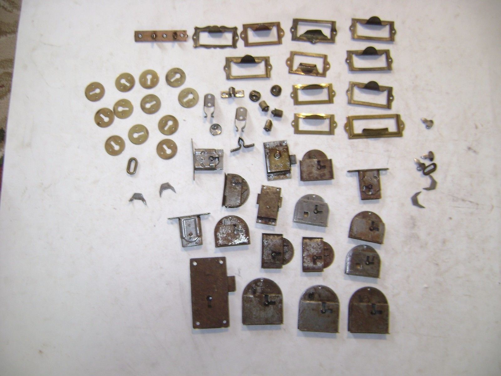 Antique @ Vintage furniture Locks , key hole covers , brass card file , drawer