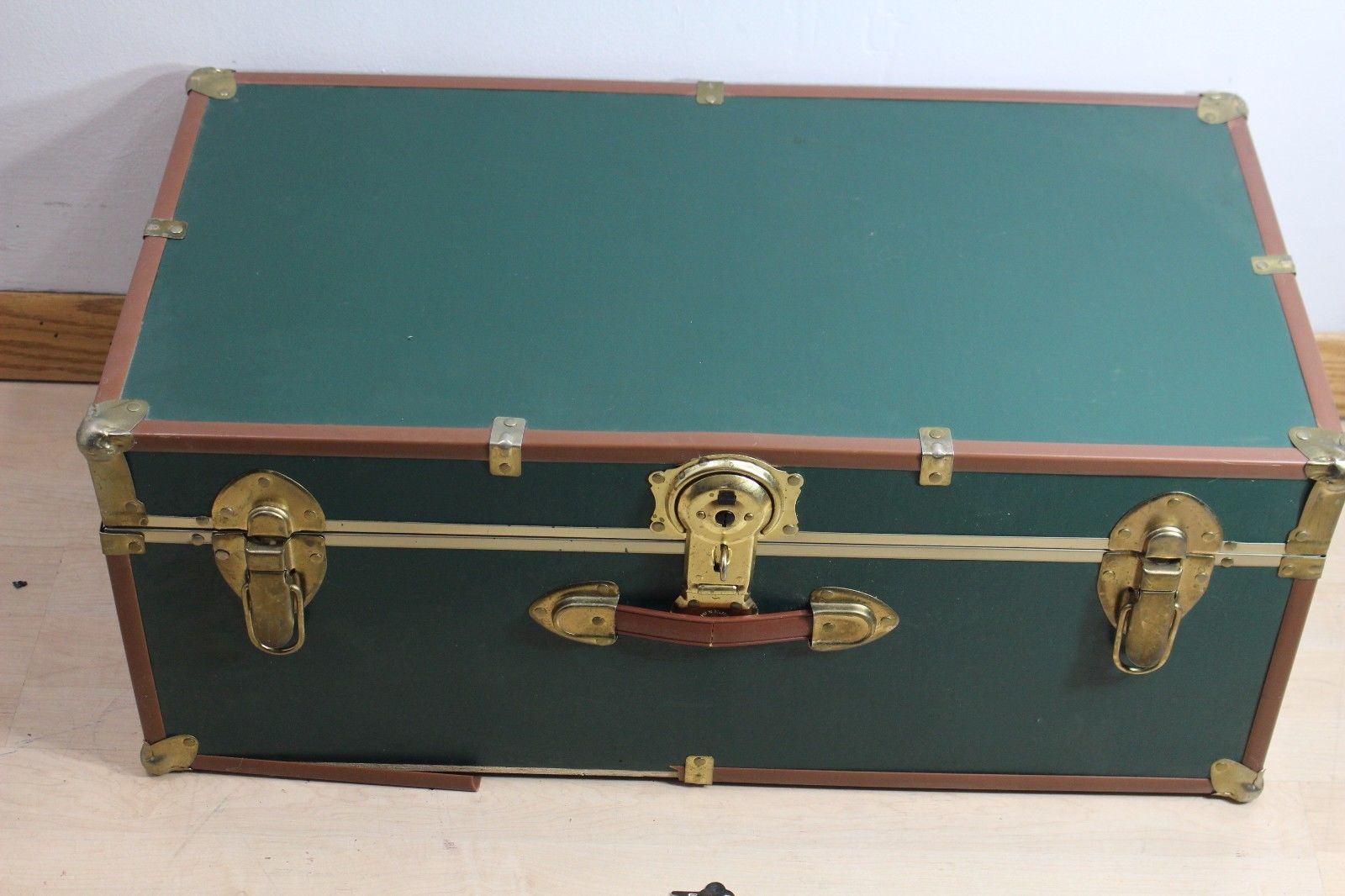 Title (ebay affiliate link): Vintage Metal Green Trunk Chest Green Steamer Foot Locker w key 30 x 13 x 16