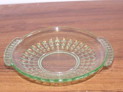 GREEN DEPRESSION GLASS HANDLED PLATE
