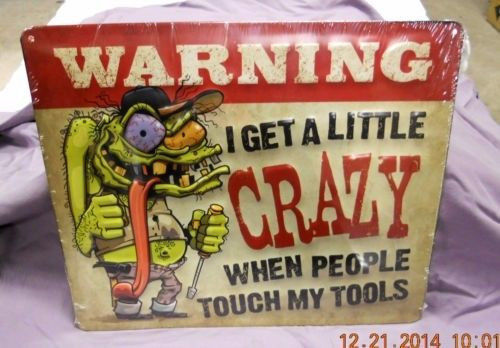Ed Roth RAT FINK WARNING CRAZY WHEN PEOPLE TOUCH MY TOOLS Garage Tool Box Art