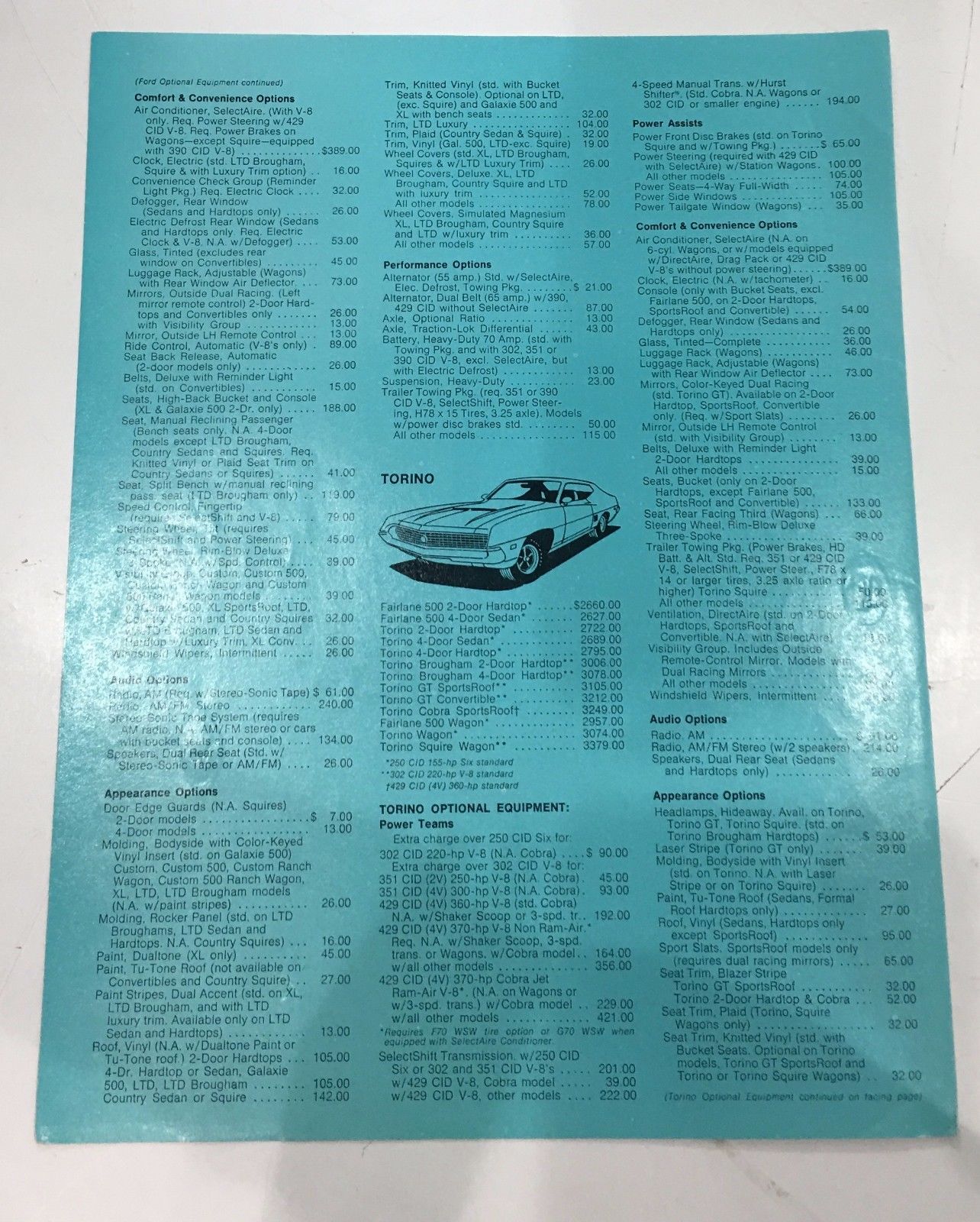 1970 Vintage Ford Automotive Car Customization and Pricing Sheet Mustang