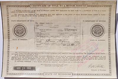VTG 1950''s 1951 BUICK SEDAN CAR TITLE COMPTON MOTORS MAPLEWOOD MISSOURI MO