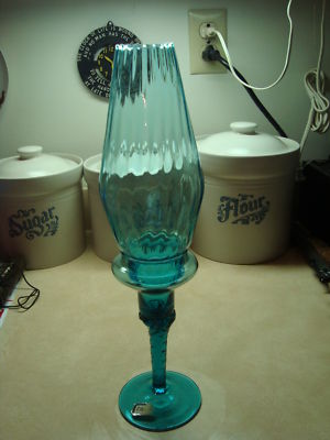 Blue Hurricane Lamp Candle Holder Depression