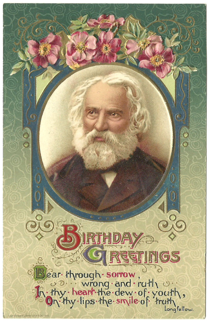 Title (ebay affiliate link): Winsch Birthday Greetings Postcard Poet Henry Wadsworth Longfellow VG Cond 1910