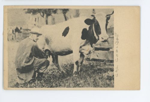 Title (ebay affiliate link): President Calvin Coolidge Milking a Cow, Farming VT Vintage Vermont Postcard
