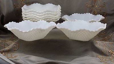 HAZEL ATLAS Quilted MILK GLASS Berry Bowls LOT OF 8 WOW