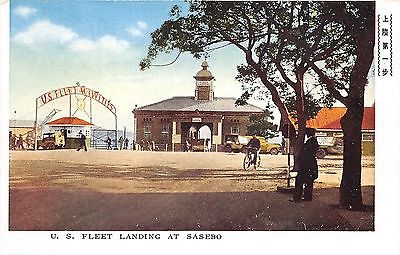 Title (ebay affiliate link): Sasebo Nagasaki Prefecture Japan~US Navy Fleet Landing~Man on Bicycle~Postcard