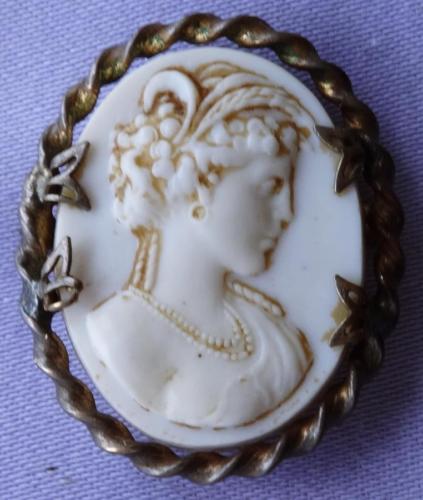 Vintage Classical Greek/ Roman Milk Glass Cameo Brooch