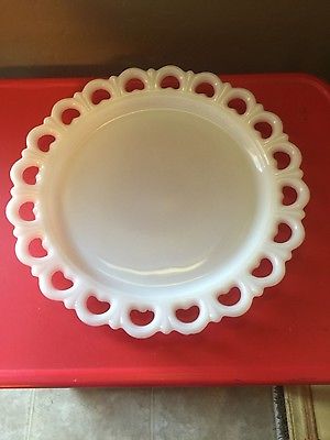 Vintage milk glass open hearts lace edge cake platter 13 inch