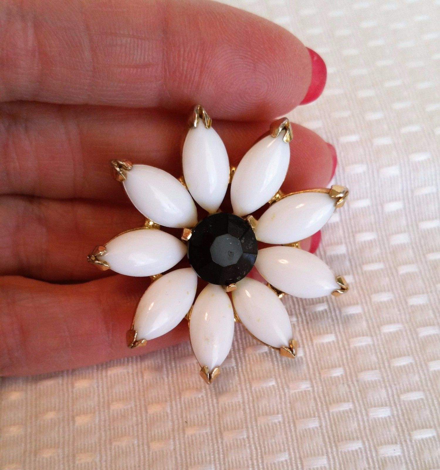 Title (ebay affiliate link): Vintage Kramer New York white milk glass flower brooch signed
