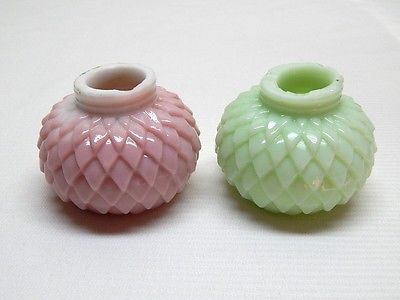 Title (ebay affiliate link): c1880 Consolidated Pink&Green Milk Glass Overlaping Leaf Salt & Pepper Shakers