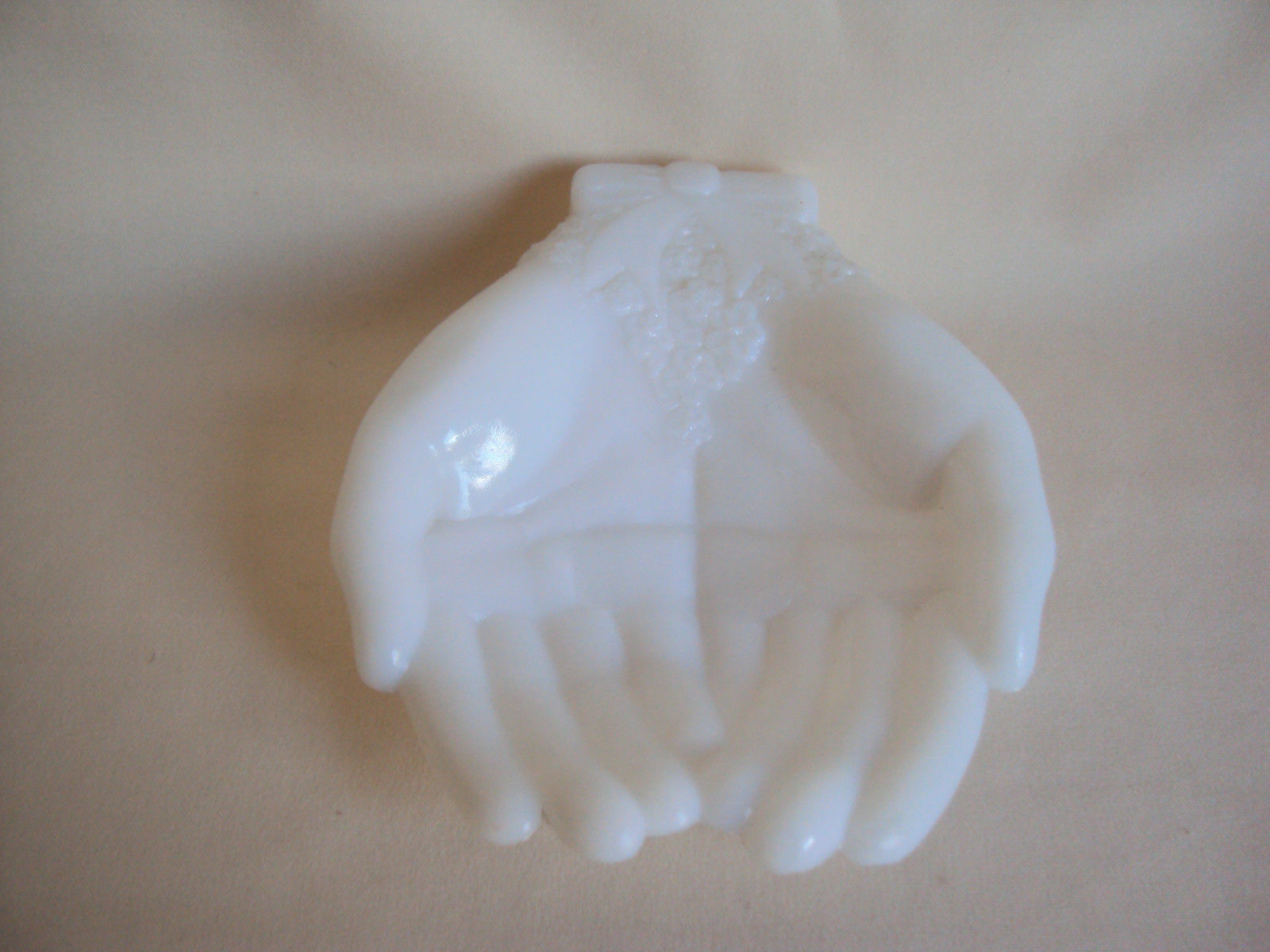 Title (ebay affiliate link): VINTAGE AVON MILK GLASS VANITY DRESSER SOAP HOLDER HAND FIGURE