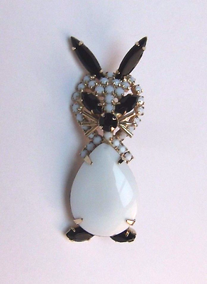 Title (ebay affiliate link): Vintage D E JULIANA Estate Brooch Black And White Rhinestones Milk Glass Rabbit