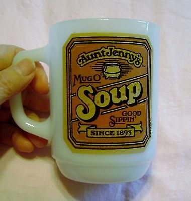 Title (ebay affiliate link): Aunt Jenny''s Soup Anchor Hocking Milk Glass Mug - Vintage