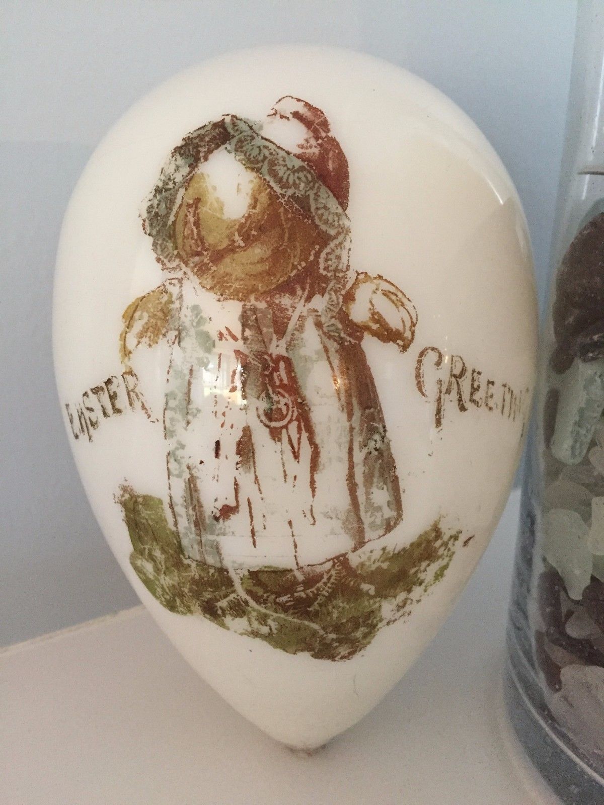 VICTORIAN VINTAGE HAND BLOWN MILK GLASS EASTER GREETING EGG
