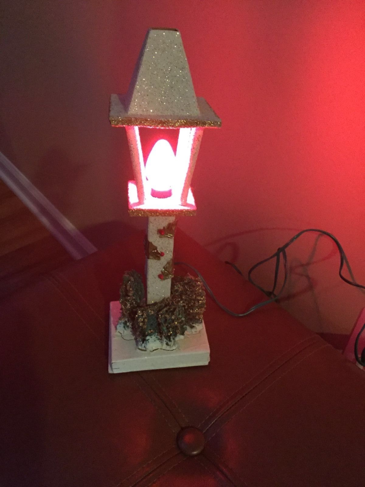 Lot Antique Christmas mica Cardboard paper mache lamp post light ornaments