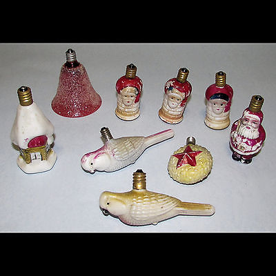 Title (ebay affiliate link): 9 Vintage Glass Christmas Figural Lights House Santa Bell