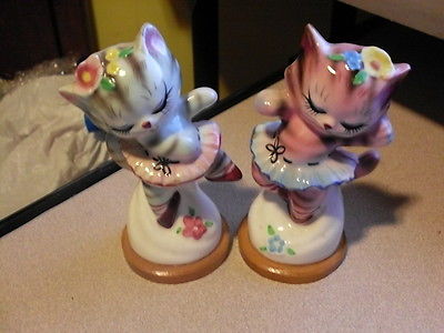 Title (ebay affiliate link): Pretty vintage cat on pedestal salt & pepper shakers, glossy, 5", pink and grey