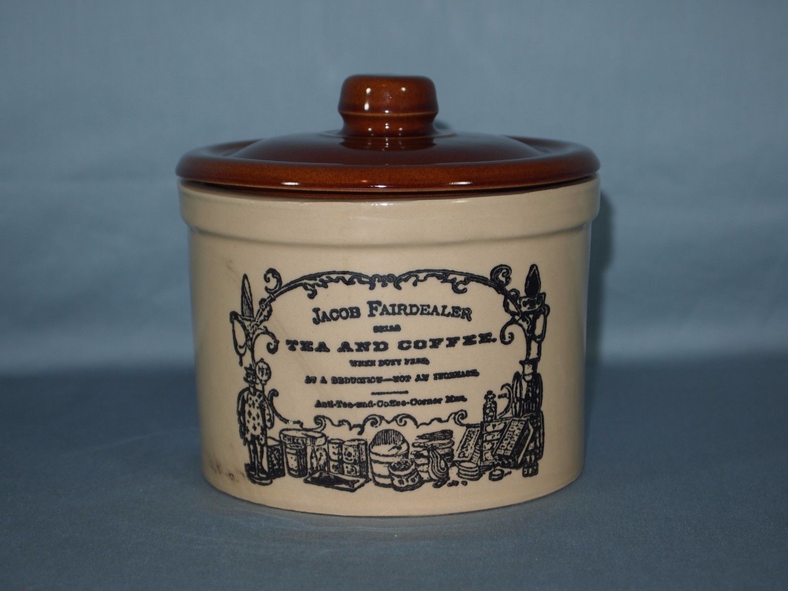 Vintage Canister Jacob Fairdealer Tea and Coffee Crock & Lid