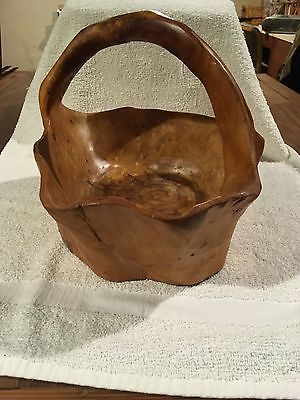 BURL WOOD Hand Carved Bowl Basket w/ Arch Handle Unusual, Shan Mu Root,