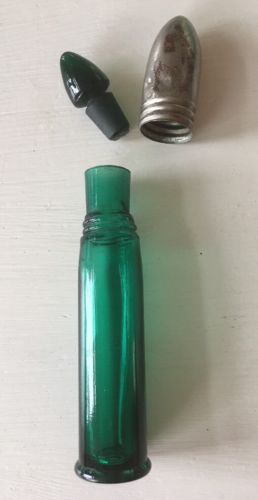 Title (ebay affiliate link): Antique Victorian Silver Green Bullet Glass Stopper Perfume Scent Bottle