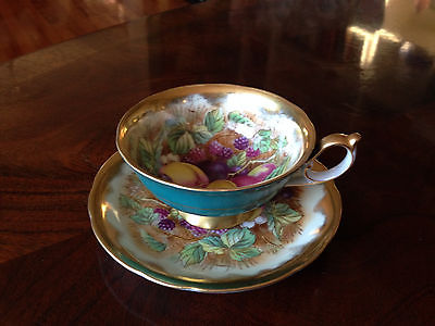 Vintage Wako Bone China Tea Cup & Saucer Fruit, Gold Trim
