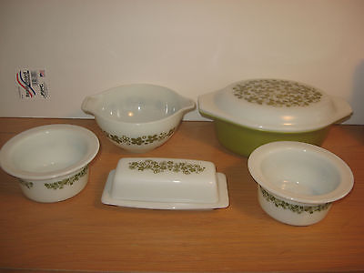 PRETTY LITTLE GREEN FLOWERS PYREX MILK GLASS LOT