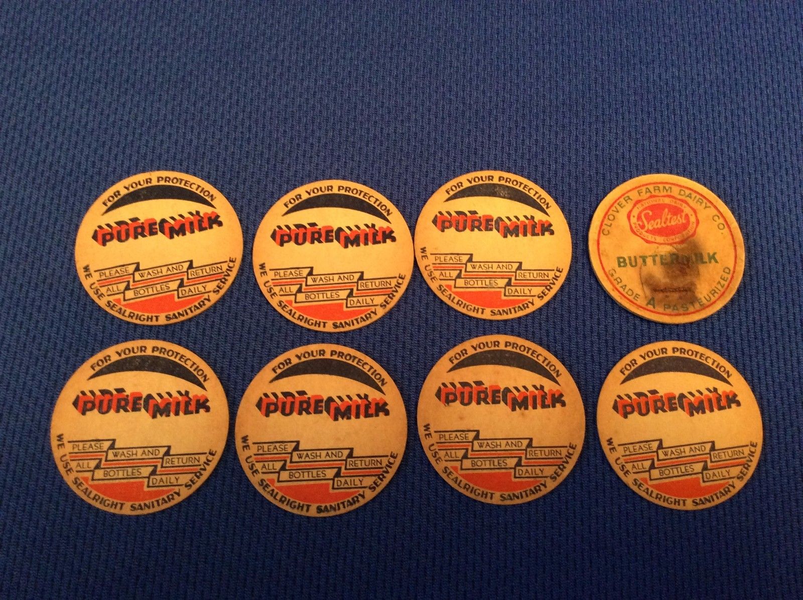 Title (ebay affiliate link): (F) Vintage Pure Milk Glass Bottle Lot of 8 Insulators Label Tops Caps