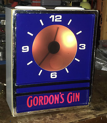 antique Gordon''s Gin light-up bar clock electric plug-in AC analogue