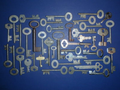 Antique Vintage old skeleton key lot furniture lock box