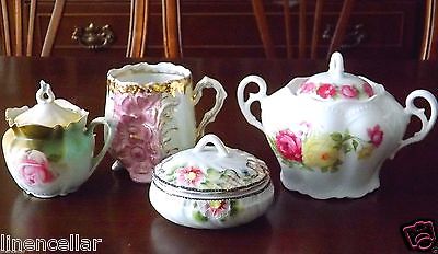 Antique Porcelain Sugar Cup Covered Dish Mustard Jar Lot