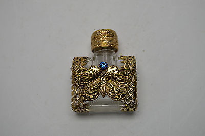 Vtg Czech perfume bottle Butterfly design clear glass blue stone , glass dauber