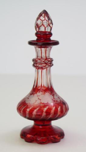Title (ebay affiliate link): Antique Ruby Cut to Clear Art Glass Scent Bottle Perfume Unusual Neck 6.25" Tall