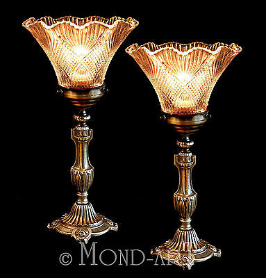 Beautiful PAIR Of 1920s ART NOUVEAU DECO Bronze Bedside Table Mantle Lamps