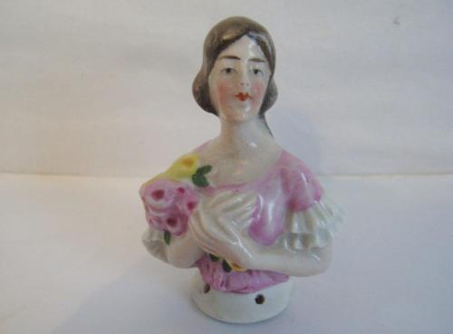 Title (ebay affiliate link): SUPERB ANTIQUE PORCELAIN HALF DOLL SEWING PIN CUSHION GEORGIAN LADY GERMAN? f