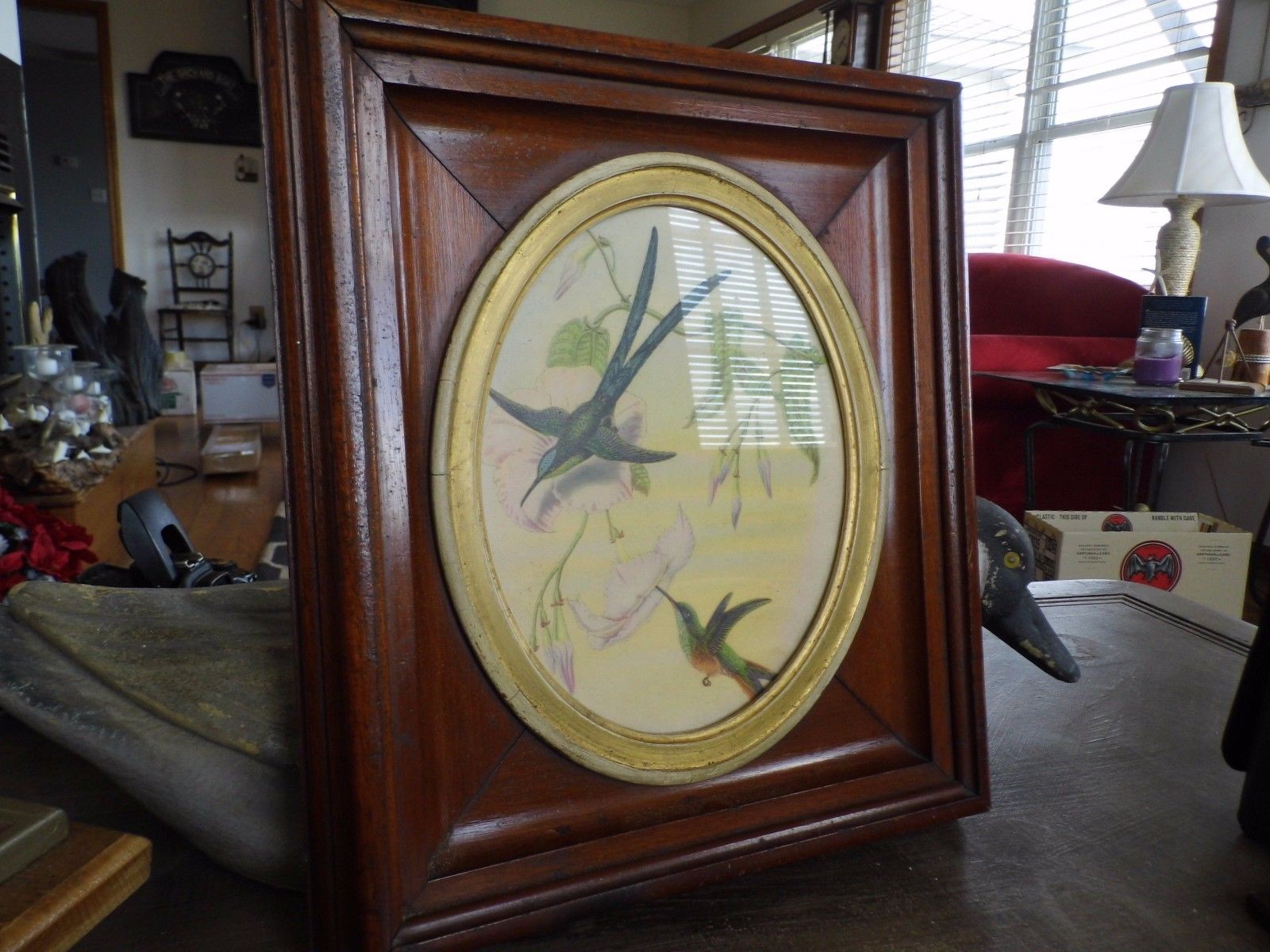 UNUSUAL ANTIQUE WALNUT DEEP WELL OVAL CENTER PICTURE FRAME