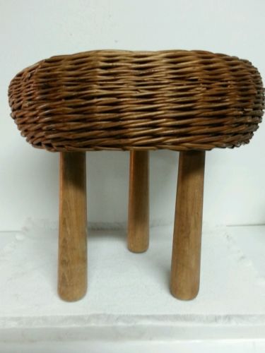 Title (ebay affiliate link): Vintage Mid Century Wicker Three Leg Foot Stool - 12 inches x 11.5 inches tall