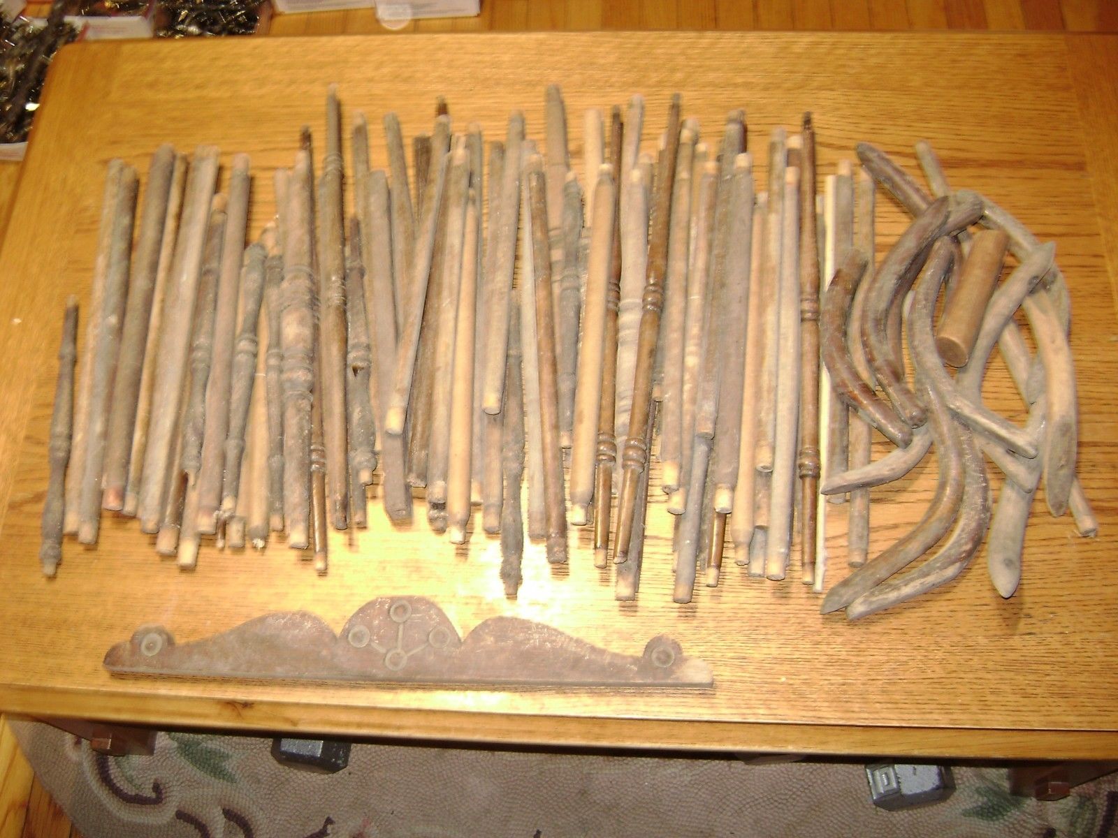 Title (ebay affiliate link): Antique Furniture parts 74 pcs . 18" oak , pine , ash dowels mix lot 12 braces