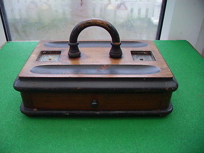 VINTAGE OAK DESK INKSTAND STANDISH