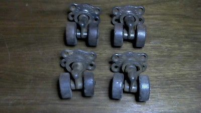 antique Tucker cast iron and double wooden wheel casters(patent Aug. 17 1886)